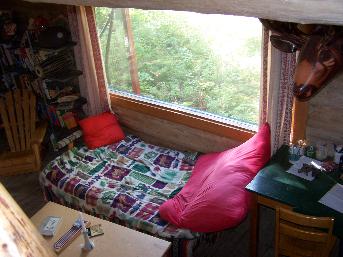 Experience wilderness living in comfort in this spacious 1500 square foot log cabin spread over two floors. Helmed from the surrounding forest and lovingly constructed with wonderful attention to detail over a five year period, this authentic masterpiece easily sleeps 6 adults. It comes equipped with wood and propane stoves, running water, and an eco-toilet. Whether curled up on the sofa in front of the woodstove, by the window overlooking the lake, or in a rocking chair on the veranda, rest and truly Be on vacation. For those more activity inclined, swimming, fishing, canoeing, or hiking are right at your doorstep.